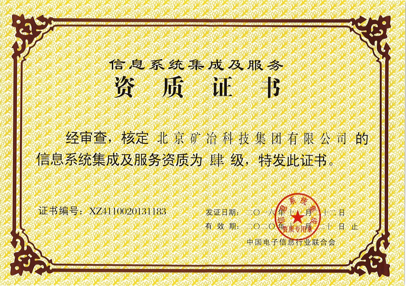 • 系统集成证书