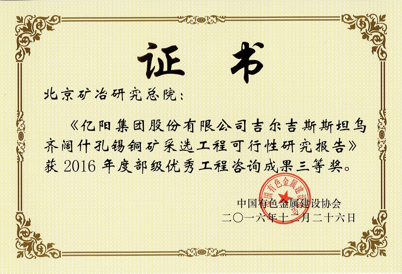 新疆金川矿业有限公司金山金矿采选冶工程——2017北勘设计奖