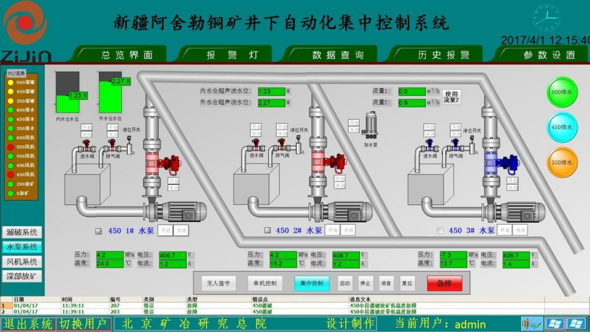 (1)能直观在地面主控室对矿山整个采区和作业点的固定设施的机械、电气工作参数,设备运行参数进行实时显示,并远程控制设备的启停,便于地面对其进行及时、准确的调度。