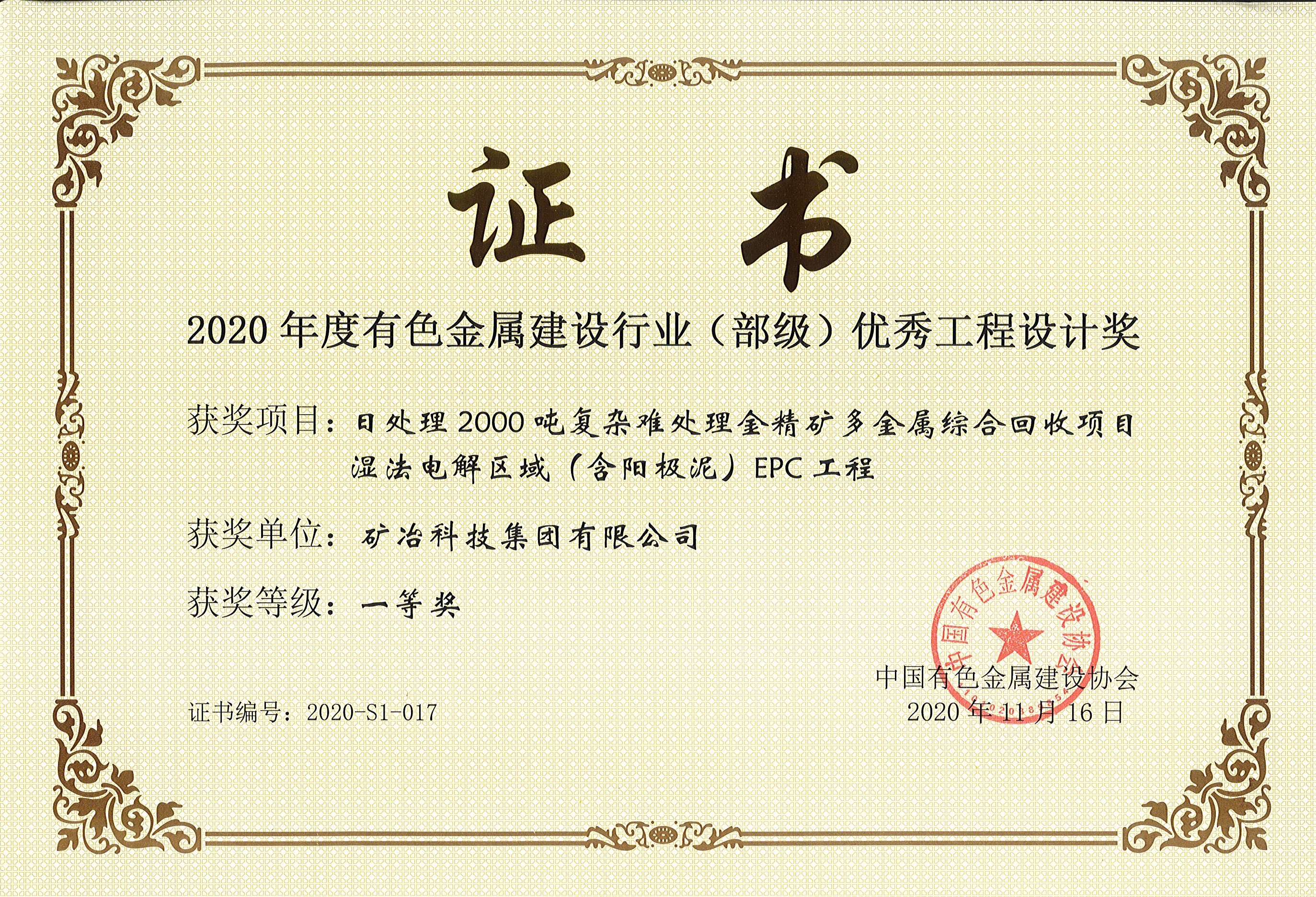 日处理2000吨复杂难处理金精矿多金属综合回收项目湿法电解区域(含阳极...