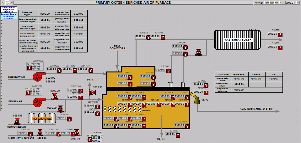 DCS系统使用模板化编程,针对每类设备,配置安全、超驰、过程三层连锁控制逻辑,提高了操作的安全性,达到安全可靠的设计目的。侧吹炉炼铜全流程复杂工艺的全自动控制与预警,可以指导生产平稳,提高设备运转率,降低劳动强度,减少维护和运营成本,为企业更高更快的发展赢得先机。